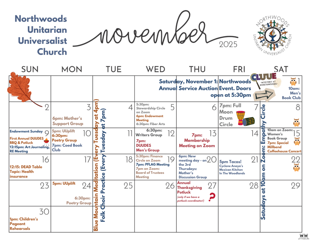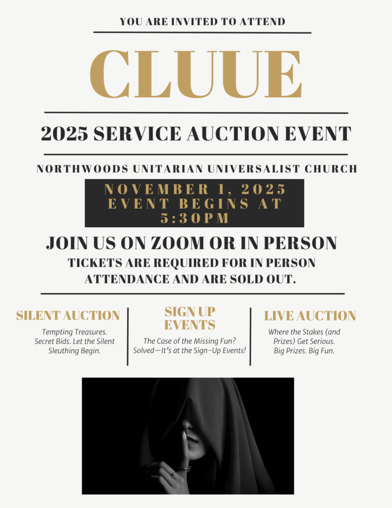 Open to all Northwoods members and friends. To attend online: Use our custom URL to attend https://zoom.us/my/northwoodsuu or join by Meeting ID: 766 833 5778.